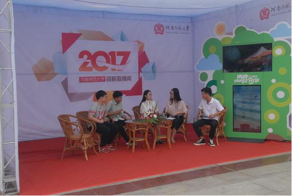 学校在西校区图书馆广场设置迎新直播间,迎新老师、志愿者、家长新生都可以进入直播间吐露心声。音乐舞蹈学院新生辅导员王小君说:“学校选择在教师节开始迎新工作,用对新生的爱作为节日礼物送给自己,将是一段美好的回忆,必将激励着我用百分之百的真心为我的学生服务。”一位从贵州来的新生家长说:“开始还有点担心孩子来这么远的地方上学,看到师大这么用心来为学生,我们就放心了。”值得一提的是,学校今年在每栋宿舍楼下安装了电子显示屏,平台直播信息实时传输到每台电子屏上,新生和家长在使用微信观看直播之外,随时随地都能感受到学校迎新盛况。