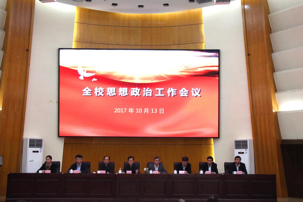 为深入贯彻全国、全省高校思想政治工作会议精神,进一步加强和改进学校思想政治工作,10月13日,郑州工程技术学院召开全校思想政治工作会议。校领导、学校副科级以上干部以及全体学生工作人员参加了会议。会议由卢奎校长主持。