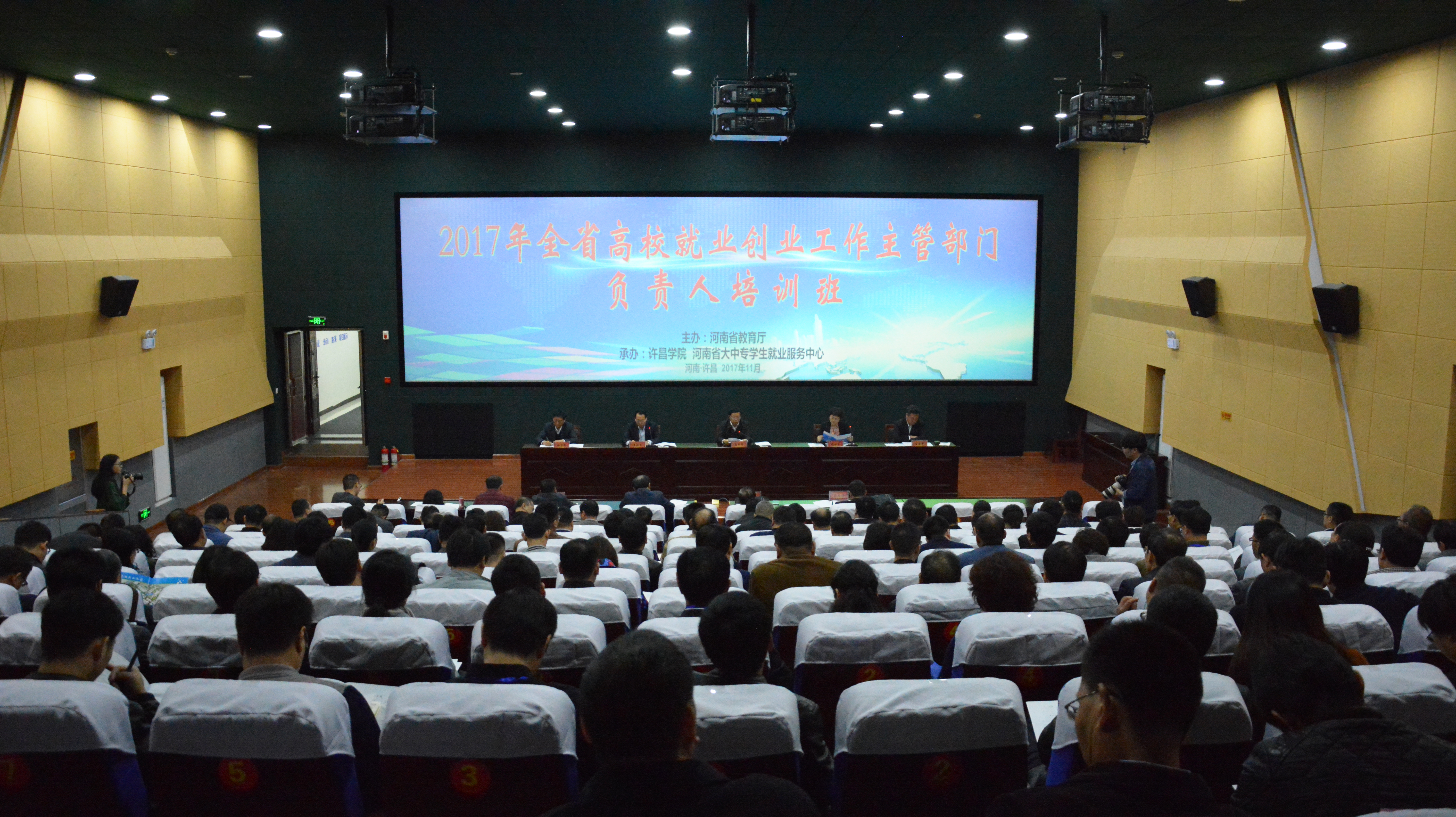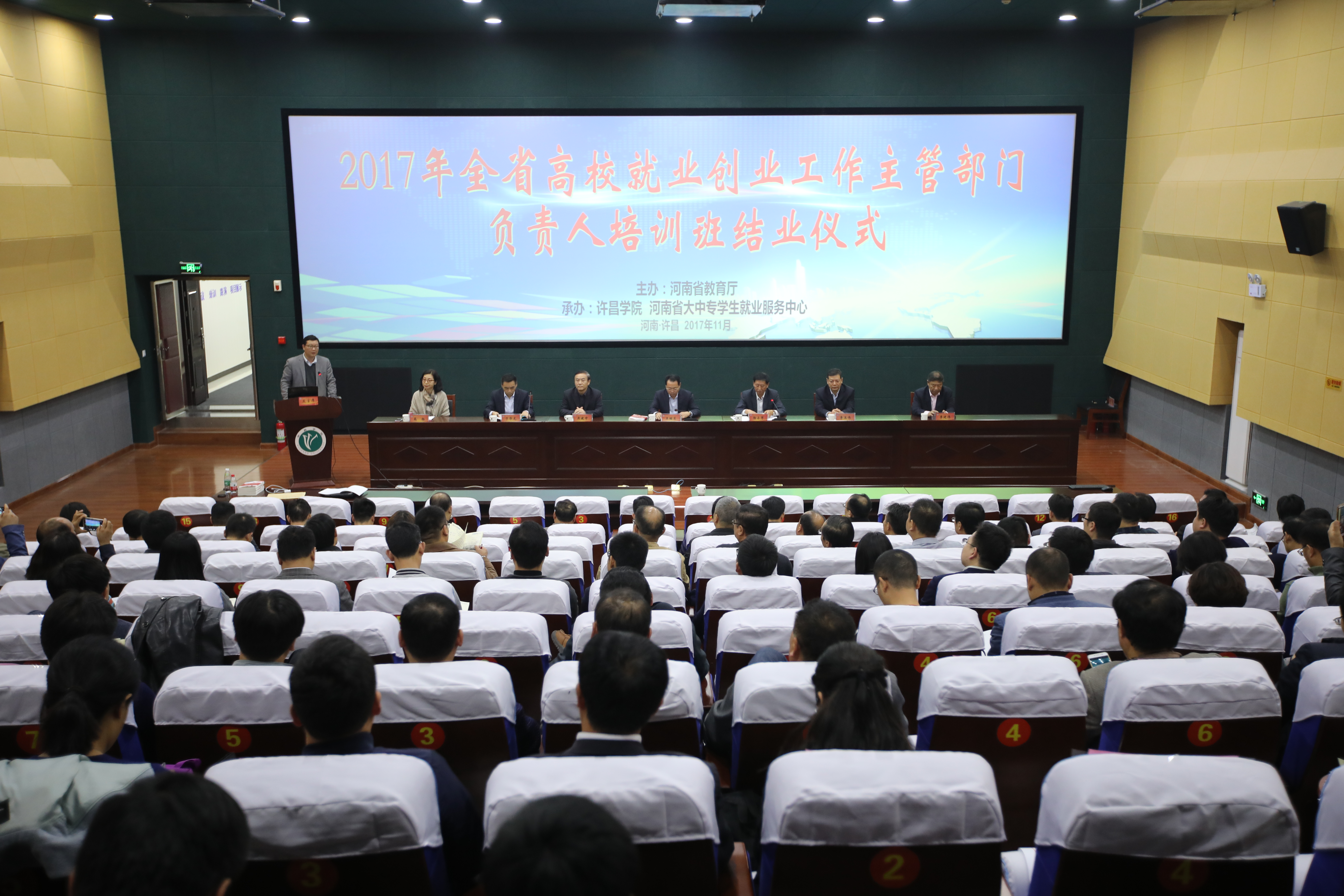 为进一步提升我省高校就业创业工作主管部门负责人专业化素质和管理水平,11月7日-8日,由河南省教育厅主办,许昌学院与河南省大中专学生就业服务中心联合承办的“2017年全省高校就业创业工作主管部门负责人培训班”在许昌学院成功举办。省委高校工委专职委员高治军出席开班仪式并讲话,许昌学院院长赵继红代表承办方致辞,省教育厅学生处处长王继东主持开班仪式。全省136所高校近170名就业创业工作主管部门负责人参加了此次培训班。