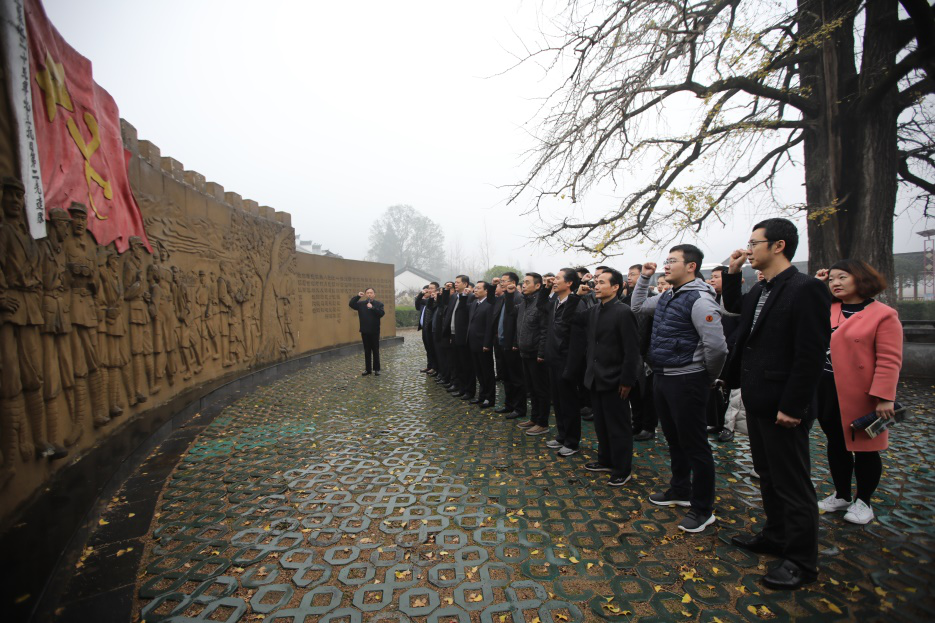 为深入学习贯彻党的十九大精神,把全体党员的思想和行动统一到十九大精神上来,凝心聚力、全力以赴做好各项工作任务,11月17日,省教育厅学生处、就业中心党支部组织党员赴红25军长征出发地——信阳市罗山县何家冲,开展主题为“不忘初心 牢记使命 缅怀先烈 永跟党走”红色教育活动。