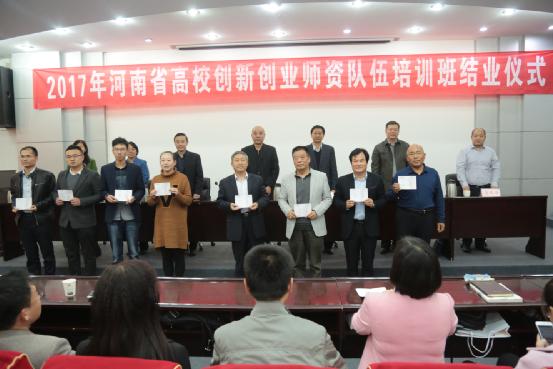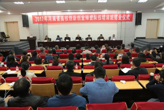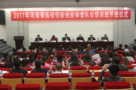 10月14-18日,2017年河南省高校创新创业师资队伍培训班在黄河科技学院成功举办。省教育厅副巡视员李金川,黄河科技学院党委书记李森、党委副书记赵会利,省教育厅学生处处长王继东,省教育厅学生处副处长李玉伟,河南财政金融学院职业指导教研部主任刘筠等出席开班仪式,全省129所高校的创新创业指导课程专兼职教师参与此次培训。开班仪式由省教育厅学生处处长王继东主持。